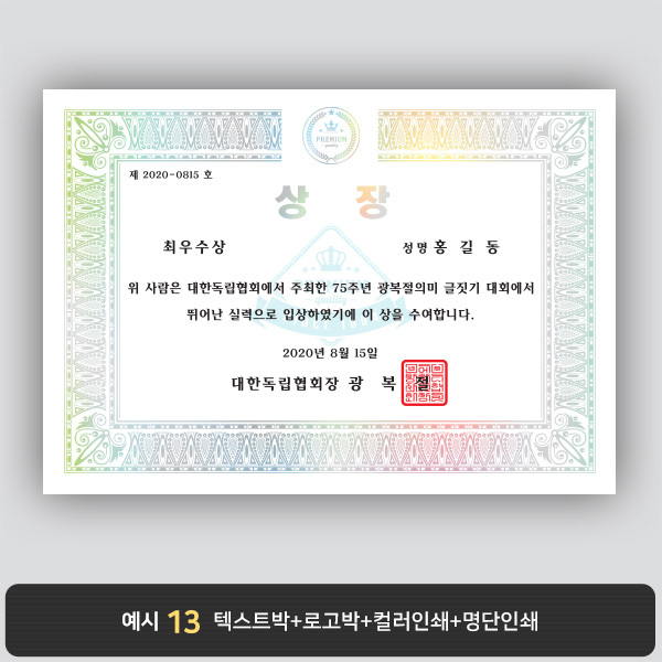 상장용지_은 홀로그램박 177 > 상장용지